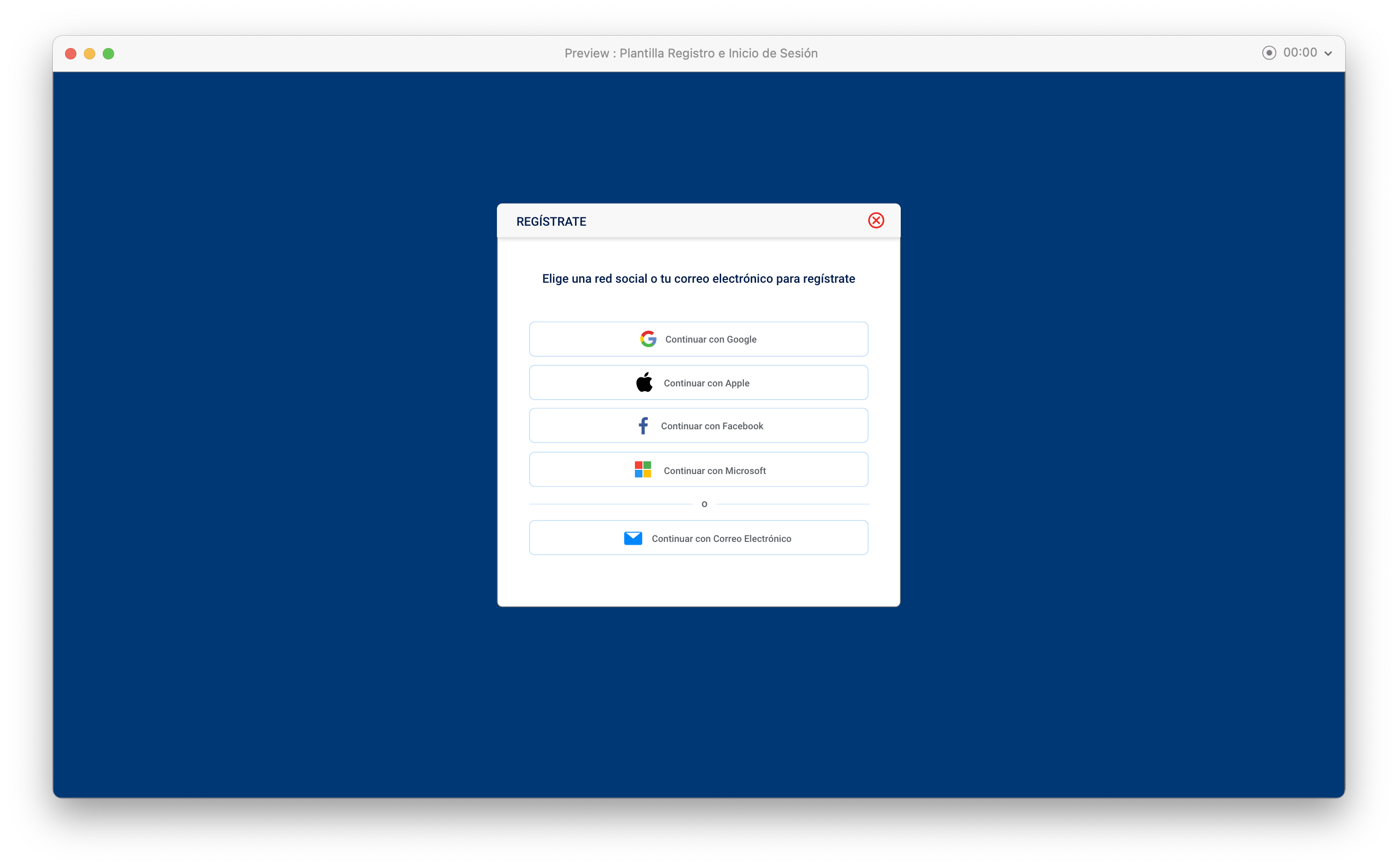 Plantilla de registro e inicio de sesión